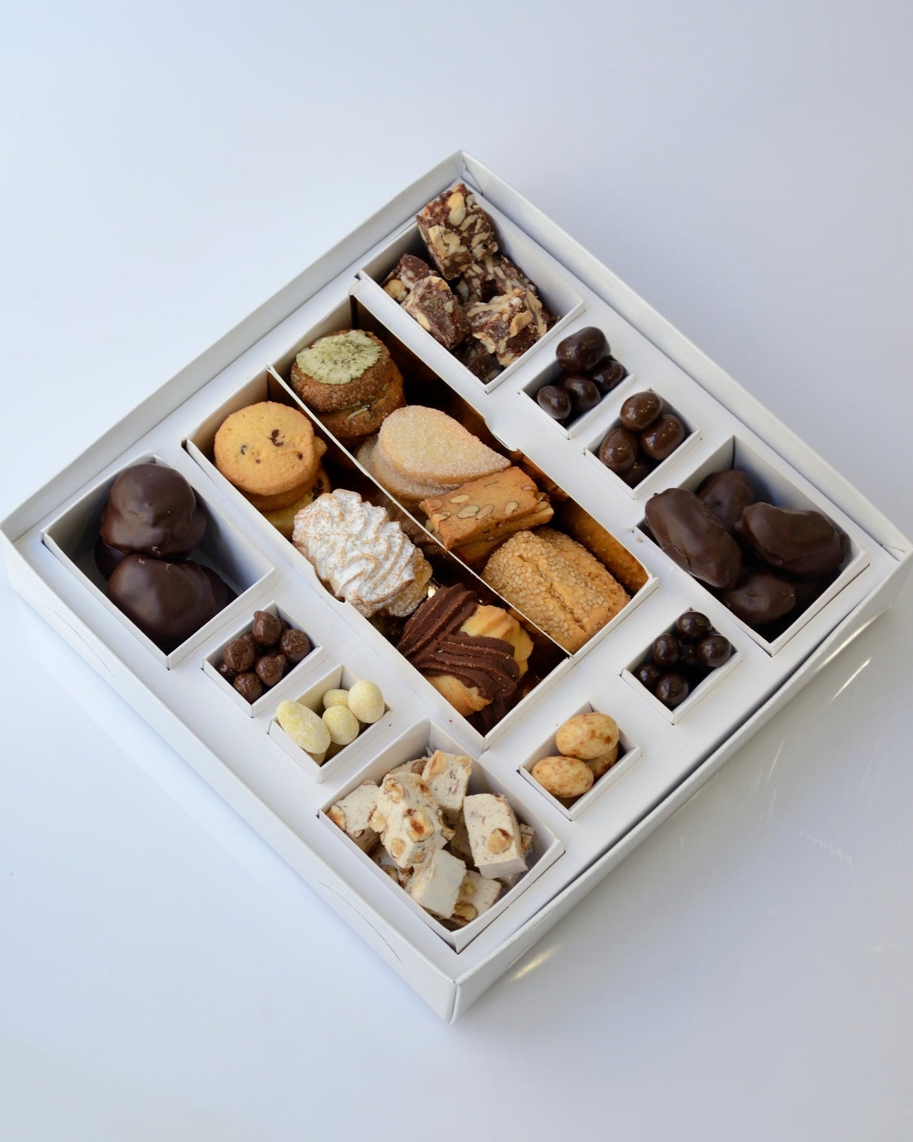 Un ricco assortimento di torroni, dragèe, biscotti Natalizi e frutta secca al cioccolato, da mettere a centrotavola durante le Feste... Per saperne di più
