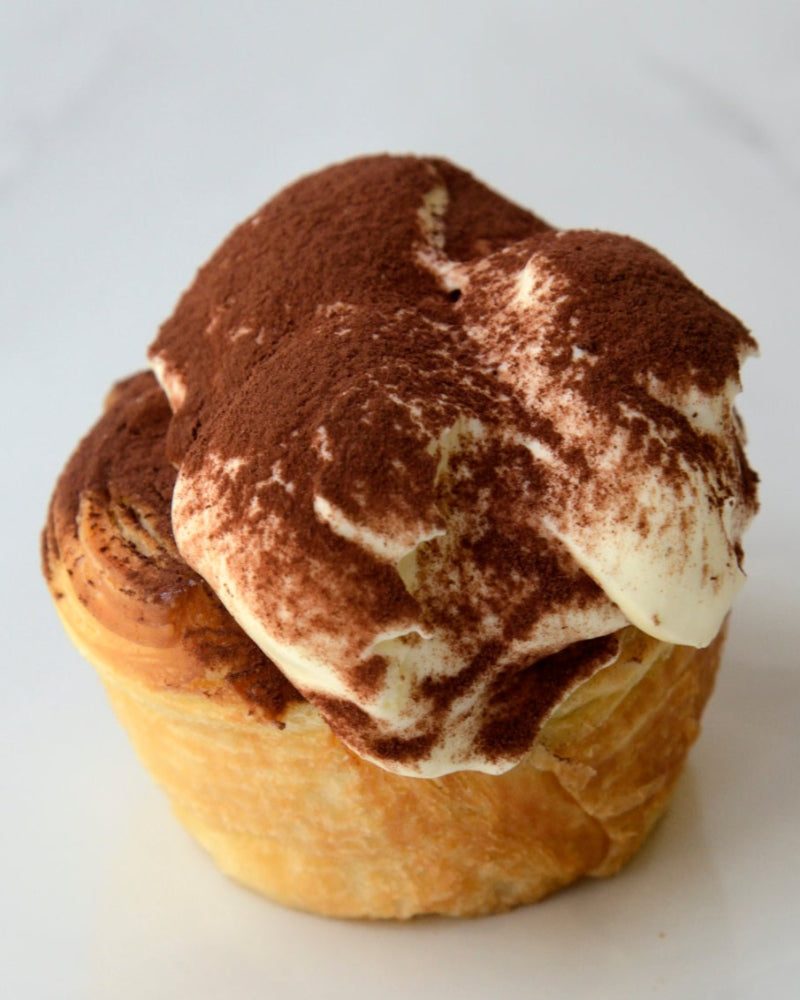 Brioche sfogliata al burro, ripieno di biscuit al caffè, crema al mascarpone e caramello liquido al caffè con una leggera... Per saperne di più
