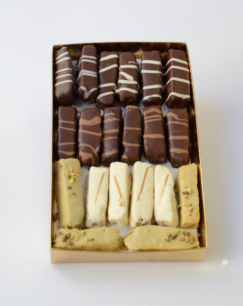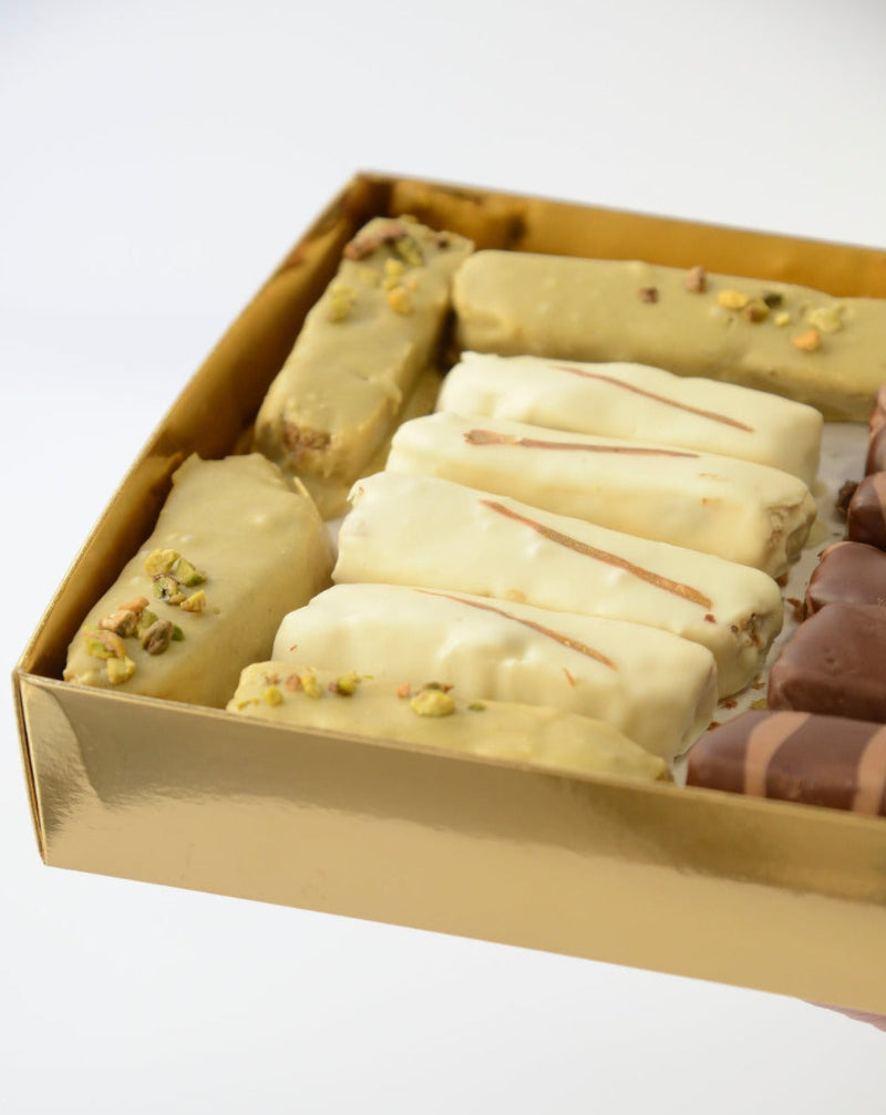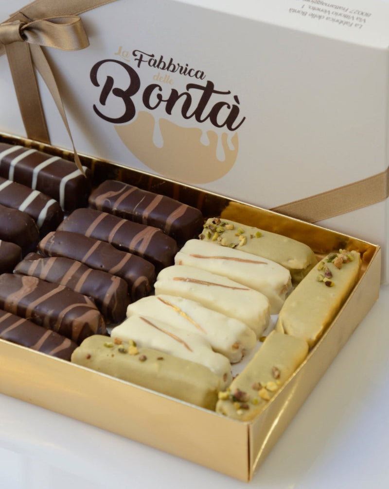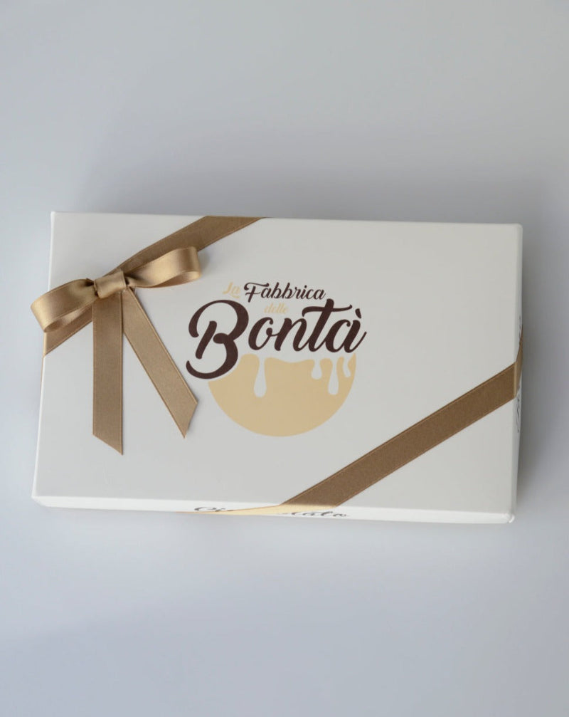 Ingredienti:Torrone Morbido caffè[Ingredienti Meringa:Zucchero,MANDORLE,NOCCIOLE, Miele di fiori alpini, Acqua, Pasta di caffè [Zucchero, Olio diNOCCIOLA,NOCCIOLE, Estratto naturale di caffè (6,90 %), Caffé in polvere (3,40 %)], Sciroppo di glucosio, Gelatina in polvere, Acido citrico -Cioccolato bianco (32% burro di cacao min.) [Burro di cacao, Zucchero,LATTEintero in polvere,LATTEscremato in polvere, Siero diLATTE,BURRO, Emulsionante [Lecitina diSOIA], Estratto naturale di vaniglia]] , Torrone Morbido limone[Ingredienti Meringa:MANDORLE, Zucchero,NOCCIOLE, Miele di fiori alpini, Acqua, Pasta di limone [Scorza di limone, Sciroppo di glucosio, Zucchero], Sciroppo di glucosio, Gelatina in polvere, Acido citrico -Specialità a base di burro di cacao e succo di yuzu [Zucchero, Burro di cacao (34,40 %), Maltodestrina, Succo di yuzu (2,40 %), Emulsionante [E322 (girasole)]]] , Torrone Morbido Nocciola[Ingredienti Meringa:Zucchero,NOCCIOLE, Miele di fiori alpini, Acqua, Pasta diNOCCIOLEtostate Napoli, Sciroppo di glucosio, Gelatina in polvere, Acido citrico -Ricopertura:Cioccolato di copertura al latte (39% cacao min.) [Zucchero, Burro di cacao,LATTEscremato in polvere, Fave di cacao,BURROconcentrato, Emulsionante [Lecitina diSOIA]], Cioccolato nero di copertura (61% cacao min.) [Fave di cacao, Zucchero, Burro di cacao, Emulsionante [E322 (girasole)], Estratto naturale di vaniglia]] , Torrone Morbido Pistacchio[Ingredienti Meringa:Zucchero,MANDORLE, Miele di fiori alpini, Acqua, Sciroppo di glucosio, Gelatina in polvere, Pasta diPISTACCHIO, Acido citrico -Ricopertura:Cremino pistacchio[Ripieno:Cioccolato bianco (33% burro di cacao min.) [Burro di cacao,LATTEintero in polvere, Zucchero, Emulsionante [E322 (girasole)], Estratto naturale di vaniglia], Pasta diPISTACCHIO, Olio di riso, Burro di cacao,BURROconcentrato - Glacier extra -Granella diPISTACCHIO] , Granella diPISTACCHIO] , Torrone Morbido Vaniglia Ricoperto[Ingredienti Meringa:Zucchero,MANDORLE,NOCCIOLE, Miele di fiori alpini, Acqua, Sciroppo di glucosio, Gelatina in polvere, Acido citrico -Ricopertura:Cioccolato nero di copertura (61% cacao min.) [Fave di cacao, Zucchero, Burro di cacao, Emulsionante [E322 (girasole)], Estratto naturale di vaniglia], Cioccolato bianco (33% burro di cacao min.) [Burro di cacao,LATTEintero in polvere, Zucchero, Emulsionante [E322 (girasole)], Estratto naturale di vaniglia]]